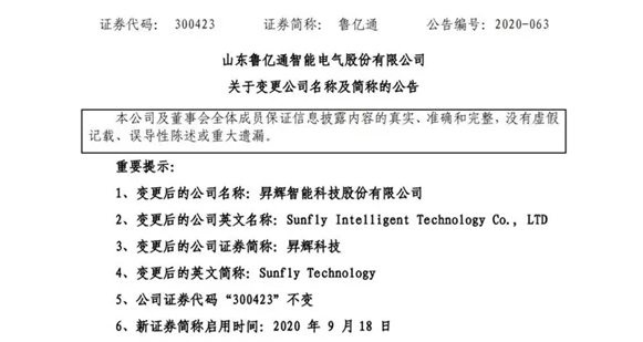 随着公司名称的变换,自2020年9月18日起,公司证券简称由“鲁亿通”变换为“尊龙集团有限公司科技”,公司证券代码稳固,仍为“300423”。