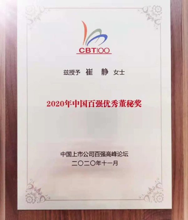 2020年11月28日, 由中国上市公司百强岑岭论坛组委会、华顿经济研究院主理的第二十届中国上市公司百强岑岭论坛暨2020年中国百强二十年颁奖仪式在北京举行。